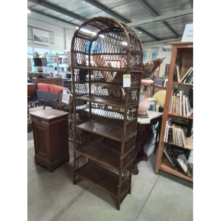 BIBLIOTHÈQUE CINTRÉ ROTIN ET VANNERIE 5 NICHES ANNÉES 60 EN L\'ÉTAT