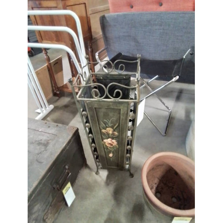 • PORTE PARAPLUIE BOIS ET MÉTAL VERT DÉCOR AUX ROSES
