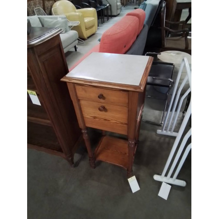 CHEVET PITCHPIN A COLONNES 1 TIROIR 1 PORTE DESSUS MARBRE BLANC FIN XIXE
