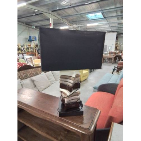 LAMPE CÉRAMIQUE ECRU TAUPE CHOCOLAT SOCLE BOIS AJ NOIR