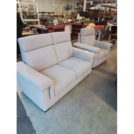 ENSEMBLE CANAPÉ 2 PLACES + FAUTEUIL TISSU GRIS POLTRONESOFA
