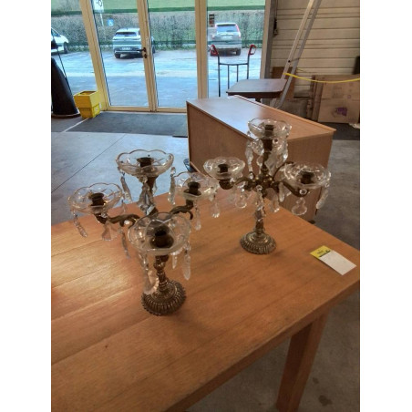 PAIRE DE GIRANDOLES  4 BRANCHES BRONZE  A PENDELOQUES ET  PAMPILLES CRISTAL