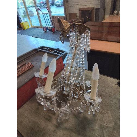 SUSPENSION LAITON ET VERRE A PENDELOQUES ET PAMPILLES CRISTAL 5 FEUX