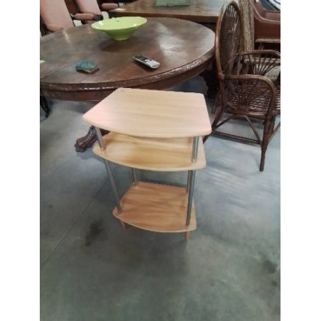 • CONSOLE A COLONNES MÉTAL CHROMÉ 3 TABLETTES BOIS CLAIR