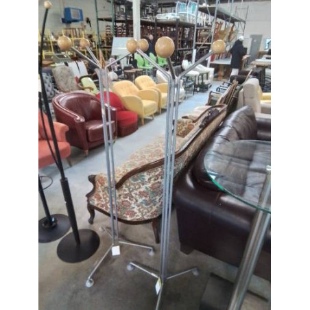 PERROQUET MÉTAL GRIS TRIPODE 3 PATÈRES BOULES BOIS