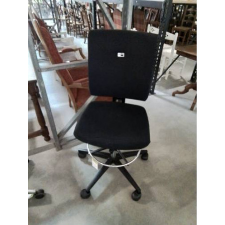 • CHAISE D’ATELIER A ROULETTES MÉTAL CHROMÉ RESINE ET TISSU NOIR DOSSIER AJUSTABLE VIASIT