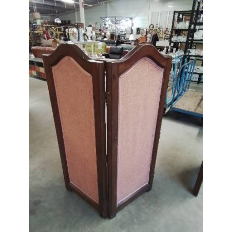 PARAVENT 3 FEUILLES BOIS CINTRE CAPITONNÉ TISSU ROSE