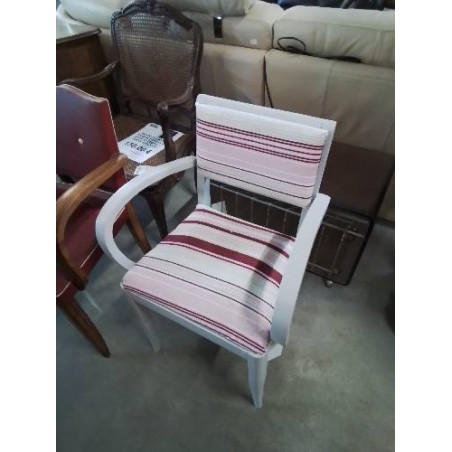 • BRIDGE BOIS PEINT ECRU ASSISE ET DOSSIER CAPITONNÉ TISSU ECRU ROSE ANNÉES 40