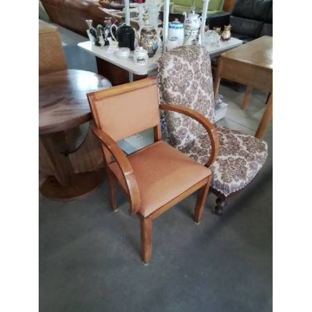 • BRIDGE ART DÉCO BOIS CLAIR ASSISE ET DOSSIER  TISSU ORANGÉ