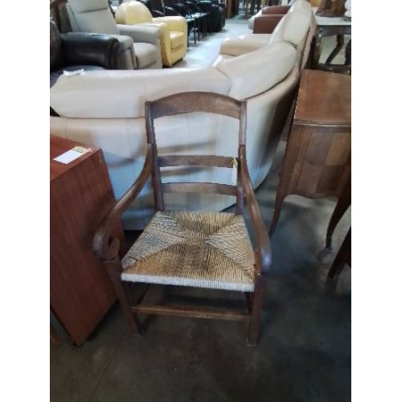 • FAUTEUIL DE CHEMINÉE A CROSSES BOIS PAILLÉ FIN XIXE