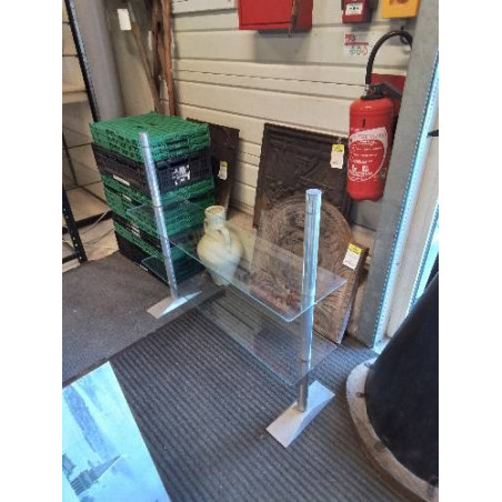 • ÉTAGÈRE SUR PIEDS METAL CHROMÉ 2 TABLETTES VERRE ANNÉES 70 EN L\'ÉTAT