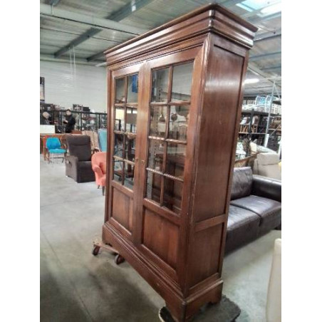 BIBLIOTHÈQUE VITRÉE A PETITS CARREAUX BOIS MOULURÉ STYLE LOUIS PHILIPPE