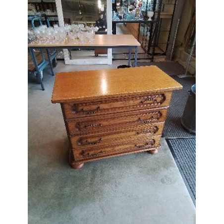 • COMMODE BOIS CLAIR MOULURÉ 4 TIROIRS PIEDS BOULES