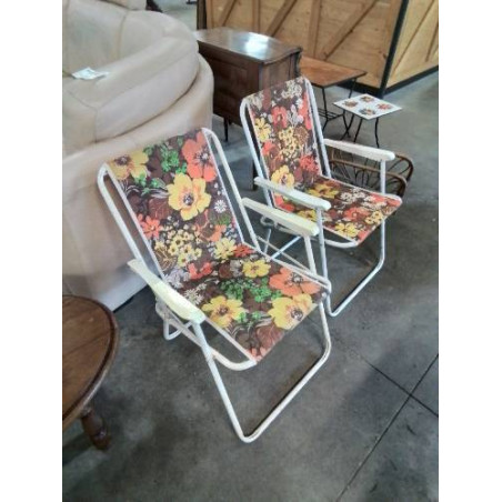 FAUTEUIL DE CAMPING PLIANT MÉTAL ET TISSU FLEURI ANNÉES 70