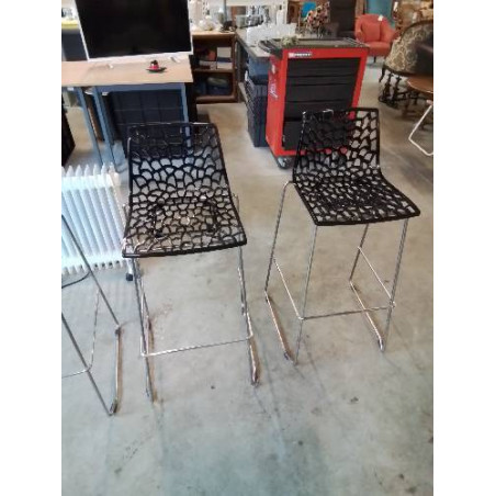 TABOURET DE BAR PIÈTEMENT MÉTAL CHROMÉ ASSISE RESINE NOIR AJOURÉ