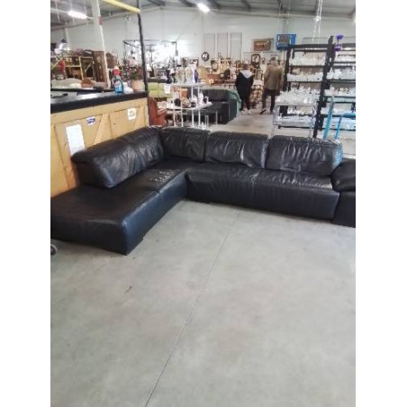 CANAPÉ D’ANGLE CUIR NOIR TÊTIÈRES RÉGLABLE EN L\'ÉTAT