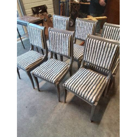 • 6 CHAISES BOIS TAUPE ASSISE ET DOSSIER CAPITONNÉ TISSU ZEBRÉ