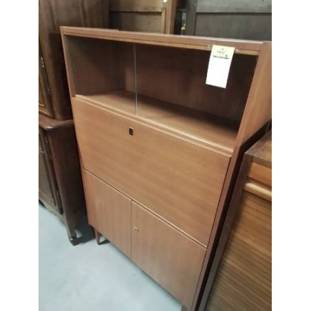 • SECRÉTAIRE VITRÉ ANNÉES 60 BOIS CLAIR 4 PORTES