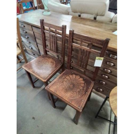 PAIRE DE CHAISES BISTROT BOIS ASSISE GRAVÉE DÉBUT XXE