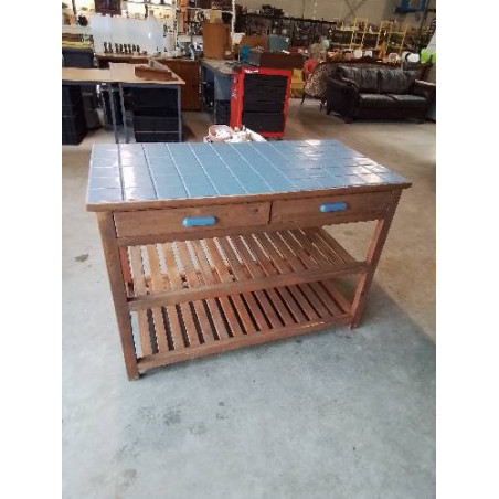 • PLAN DE TRAVAIL DE CUSINE PIN DESSUS CARRELÉ PEINT GRIS