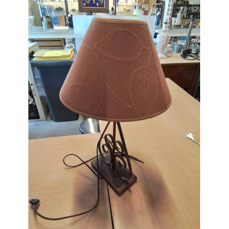 LAMPE MÉTAL COURBÉ SOCLE BOIS AJ ORANGÉ
