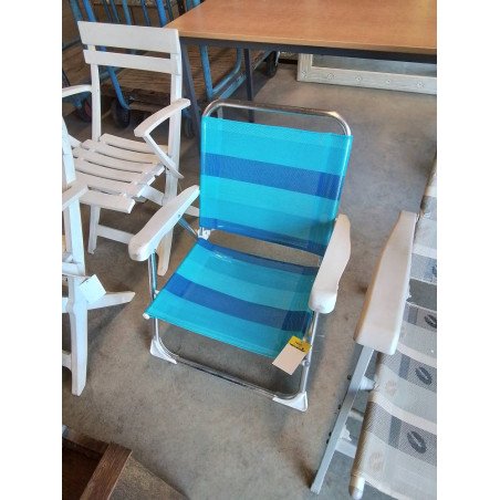 FAUTEUIL DE PLAGE PLIANT MÉTAL CHROMÉ ET TOILE BLEU
