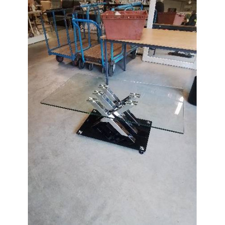 • TABLE BASSE RECTANGULAIRE PIETEMENT MÉTAL CHROMÉ PLATEAUX VERRE