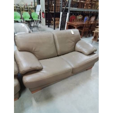 CANAPÉ 2 PLACES CUIR TAUPE PIEDS BOIS CLAIR