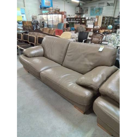 • CANAPÉ 3 PLACES CUIR TAUPE PIEDS BOIS CLAIR