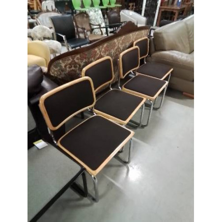 4 CHAISES PIÈTEMENT MÉTAL CHROMÉ ASSISE ET DOSSIER BOIS CLAIR CAPITONNÉ TISSU CHOCOLAT ITALIE