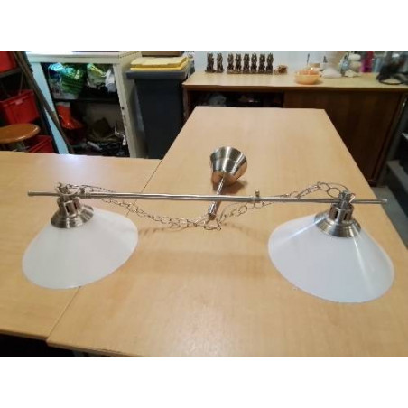 SUSPENSION RÉGLABLE 2 FEUX MÉTAL CHROMÉ ET VERRE TEINTÉ BLANC