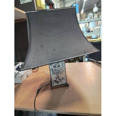 LAMPE RÉSINE DÉCOR ASIATIQUE SOCLE LAITON AJ GRIS ANNÉES 70