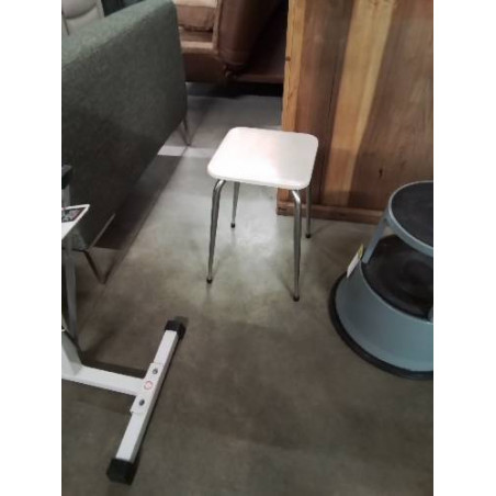 • TABOURET ASSISE SKAÏ ECRU PIÈTEMENT MÉTAL CHROMÉ ANNÉES 60