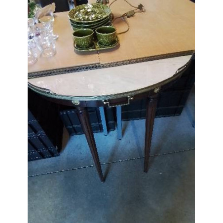 • CONSOLE A GALERIE MURAL DEMI LUNE ACAJOU DESSUS MARBRE BLANC STYLE LOUIS XVI