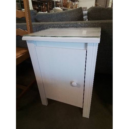 • MEUBLE BOIS ECRU 1 PORTE DESSUS TABLETTE VERRE