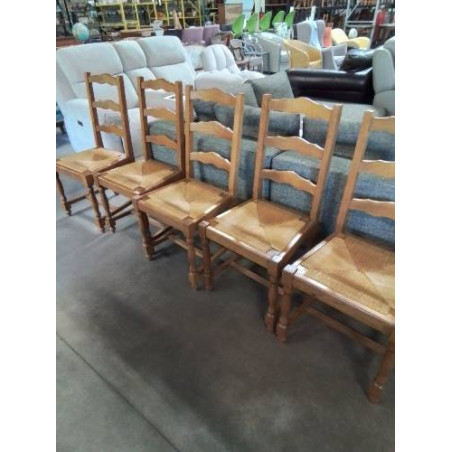 5 CHAISES A ENTRETOISE BOIS CLAIR PAILLÉ DOSSIER CHANTOURNÉ 3 BARREAUX