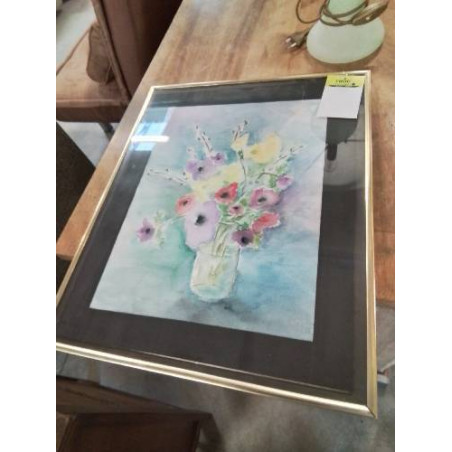 • AQUARELLE BOUQUET DE FLEURS CADRE DORÉ