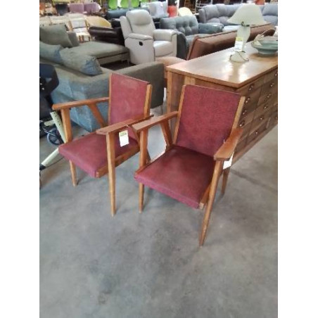• BRIDGE BOIS ASSISE ET DOSSIER CAPITONNÉ SKAÏ ROUGE ANNÉES 50