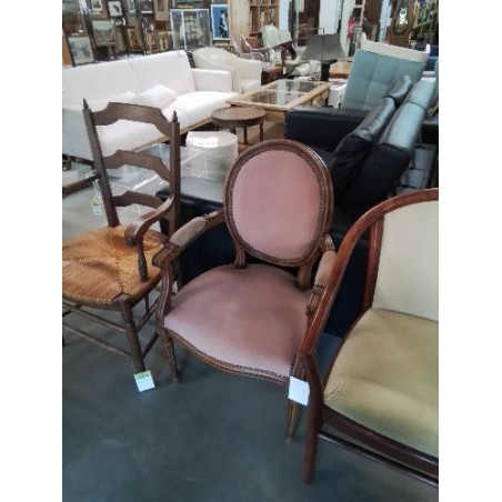 • FAUTEUIL MÉDAILLON BOIS ASSISE ET DOSSIER  TISSU VIEUX ROSE STYLE LOUIS XVI