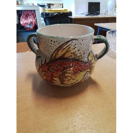 • VASE A OREILLES CÉRAMIQUE AU POISSON ET CRUSTACÉS VALLAURIS