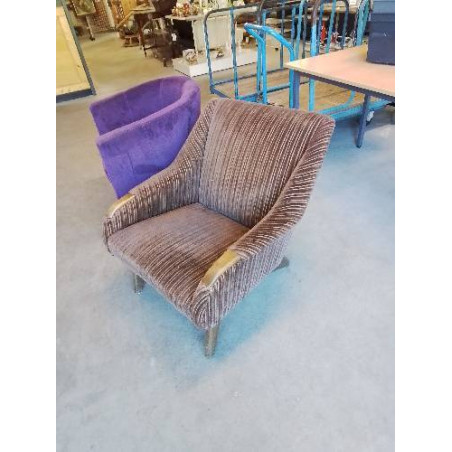 • FAUTEUIL DANOIS TECK CAPITONNÉ TISSU CHOCOLAT ANNÉES 60