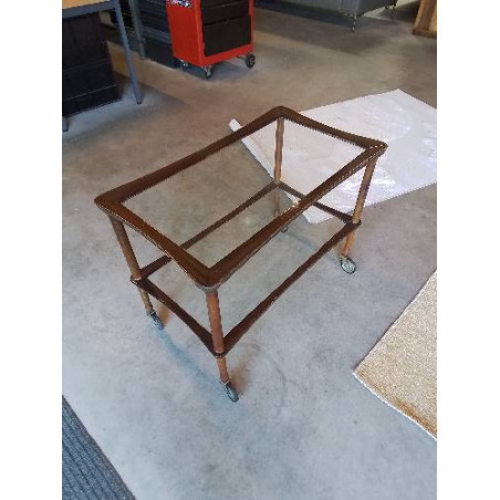 DESSERTE A ROULETTES BOIS ET VERRE 2 NIVEAUX ANNÉES 50