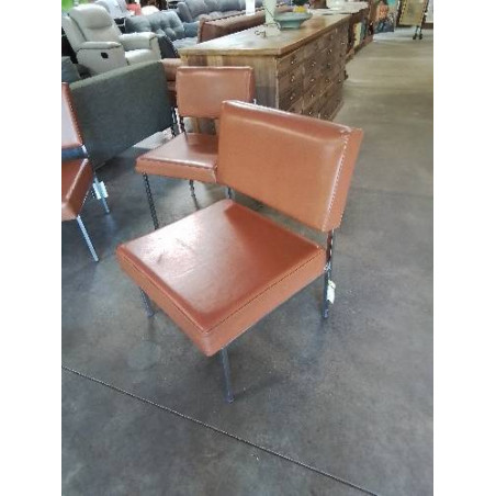 CHAUFFEUSE STRAFOR ANNÉES 50/60 PIÈTEMENT MÉTAL CHROMÉ ASSISE ET DOSSIER SKAÏ FAUVE