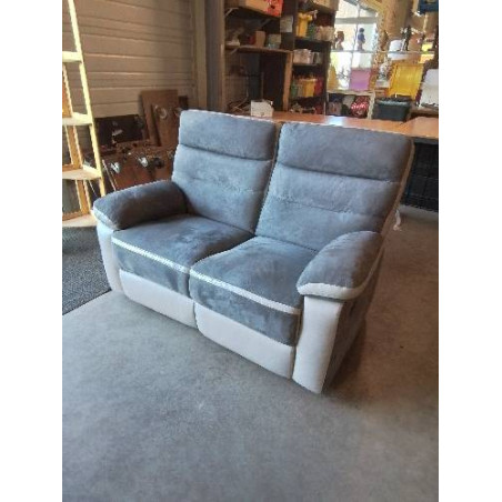• CANAPÉ 2 PLACES RELAX MANUEL PU ET TISSU TAUPE