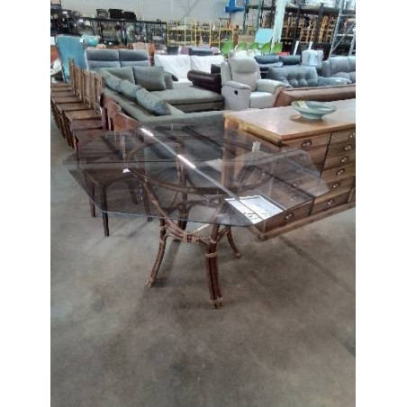 TABLE PIÈTEMENT ROTIN ET VANNERIE PLATEAU OCTOGONAL VERE FUMÉ ANNÉES 60