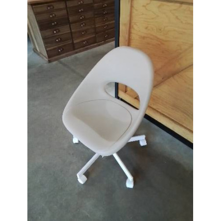 • CHAISE DE BUREAU A ROULETTES MÉTAL BLANC ET RÉSINE BEIGE