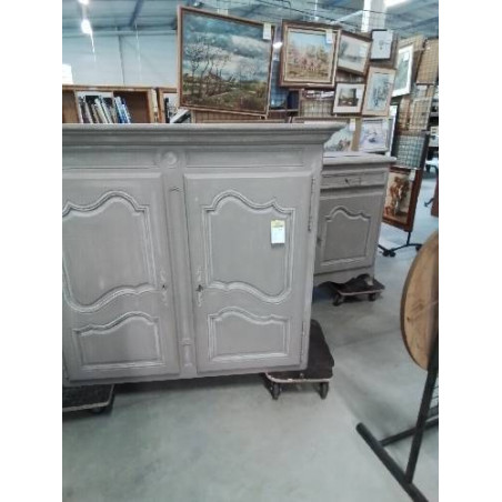 BUFFET 2 CORPS BOIS PEINT TAUPE 4 PORTES 2 TIROIRS