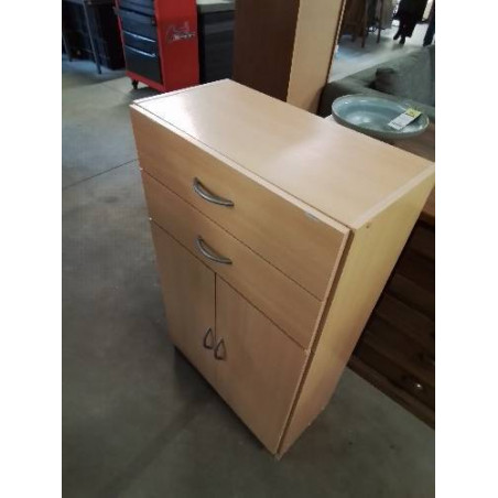 MEUBLE BOIS CLAIR 2 TIROIRS 2 PORTES