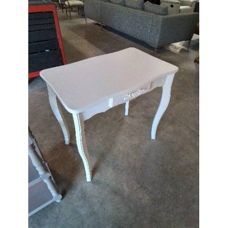 BUREAU RECTANGULAIRE CHANTOURNÉ BOIS PEINT BLANC 1 TIROIR PIEDS GALBÉS
