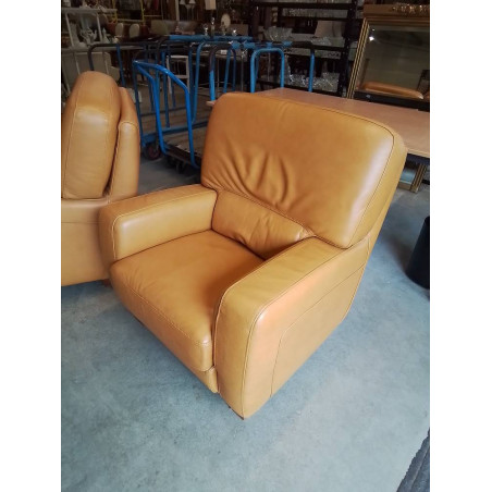 FAUTEUIL CUIR FAUVE PIEDS BOIS CLAIR
